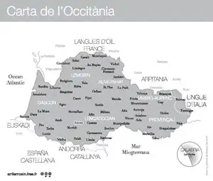- ↑ See for example the map in Occitània i l'occità Archived 2012-04-13 at the Wayback Machine, a popular work on Occitania and Occitan published by the Autonomous Government of Catalonia (in Catalan).