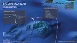 Folger Passage is located at the mouth of Barkley Sound, offshore Vancouver Island near Bamfield, British Columbia. The seafloor composition includes cobble, gravel, soft sandy sediment, and carbonate-rich detritus. Two instrument platforms, Folger Deep (100 m) and Folger Pinnacle (23 m), are installed at Folger Passage. Folger Deep is situated on soft sediment at the mouth of an inlet channel while the Folger Pinnacle platform is secured to the top of a rocky reef within a rockfish conservation area.