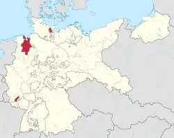 Oldenburg joined the Steuerverein (Tax Union) in 1836, which was a customs union with the Kingdom of Hanover and others. Hanover joined the Deutscher Zollverein (German Customs Union) in 1854, after negotiating advantageous conditions with Prussia and, facing isolation, Oldenburg followed suit the same year.[1] In the Second Schleswig War of 1864 Oldenburg remained neutral. In the Austro-Prussian War of 1866 Oldenburgish troops fought on the side of Prussia against Austria, joining the Prussian dominated North German Confederation in 1867. In the course of Oldenburg's accession to the North German Confederation, a military convention of July 15, 1867 transferred the Oldenburg armed forces to the Prussian army [2] and consequently, Oldenburg's military participated on the Prussian side in the Franco-Prussian War of 1870/1871.