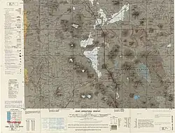 The oldest stage of activity is known as Vinta Loma and formed the bulk of the volcanic edifice, especially on the eastern side and in the summit area.[92] During this stage, lava flows and some pyroclastic flows were erupted from a central vent.[2] The pyroclastic flows are exposed as a 60 metres (200 ft) thick sequence in a cirque close to the summit and reflect the occurrence of Plinian eruptions during this stage of volcanic activity.[93] The Vinta Loma series is subdivided into two groups separated by an unconformity, which are dated to 870,000 ± 80,000–641,000 ± 9,000 and 910,000 ± 170,000–1,230,000 ± 80,000 years ago respectively.[94] The Vinta Loma series more recently was partitioned into two series, Vinta Loma proper and the younger Santa Rosa.[39] Two summit crater rims and sector collapses formed during these stages.[94] The northern summit cinder/scoria cone and some lateral lava flows have been assigned to the Santa Rosa series.[39]
