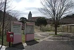 In 1609 a Spanish galleon, the San Francisco, ran aground near Onjuku. The captain and 300 survivors were cared for by the town, and later, the sailors were given a ship by the Tokugawa shogunate to return to Mexico. One of the survivors was Governor General of the Philippines Rodrigo de Vivero, who was subsequently granted an audience with shōgun Tokugawa Ieyasu.[4] In 1928 a tower was built in Onjuku to commemorate the landing of Rodrigo and friendly relations between Mexico, Spain, and Japan. It has since been designated a Prefectural Historic Monument (県指定史跡 (ken shitei shiseki)), and is surrounded by an extensive garden complex.