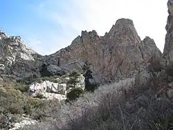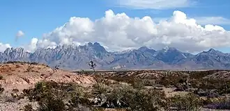 The Organ Mountains (also known as La Sierra de los Órganos) are a rugged mountain range in southern New Mexico in the Southwestern United States. Organ Mountains–Desert Peaks National Monument was declared a national monument on May 21, 2014.[1] They lie 10 mi (16 km) east of the city of Las Cruces, in Doña Ana County.[2]