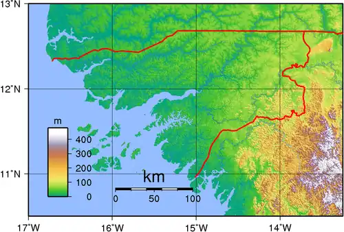 Guinea-Bissau – country located in West Africa.[1] Guinea-Bissau is the 8th least extensive country in continental Africa. It is bordered by Senegal to the north, and Guinea to the south and east, with the Atlantic Ocean to its west. Formerly the Portuguese colony of Portuguese Guinea, upon independence, the name of its capital, Bissau, was added to the country's name in order to prevent confusion between itself and the Republic of Guinea.