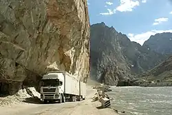 The Pamir Highway, the world's second highest international road, runs from Dushanbe in Tajikistan to Osh in Kyrgyzstan through the Gorno-Badakhshan Autonomous Province, and is the isolated region's main supply route. The Great Silk Road crossed a number of Pamir Mountain ranges.[17]