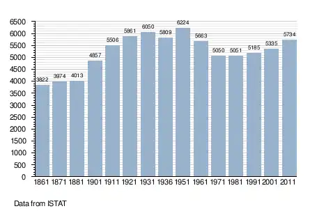 - ↑ "Demo-Geodemo. - Mappe, Popolazione, Statistiche Demografiche dell'ISTAT".