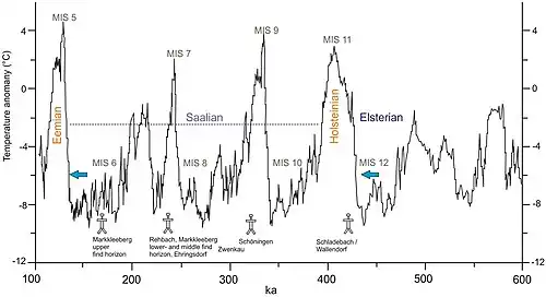 - 1 2 3 4 5 6 7 8 9 10 Van Andel, T.; Tzedakis, P. C. (1 January 1996). "Palaeolithic landscapes of Europe and environs, 150,000-25,000 years ago: An overview". Quaternary Science Reviews. 15 (5–6): 481–500. Bibcode:1996QSRv...15..481V. doi:10.1016/0277-3791(96)00028-5.
