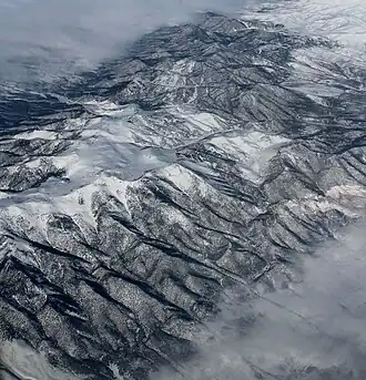 ![]() Aerial view of the Pequop Mountains | |