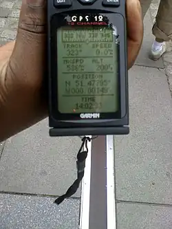 The Global Positioning System (GPS) receivers show that the marking strip for the prime meridian at Greenwich is not exactly at zero longitude (zero degrees, zero minutes, and zero seconds) but at approximately 5.3 seconds of arc to the west of the meridian, meaning that the meridian appears to be 102 metres east. In the past, this offset has been attributed to the establishment of reference meridians for space-based location systems such as WGS-84 (which the GPS relies on) or to the fact that errors gradually crept into the International Time Bureau timekeeping process. The actual reason for the discrepancy is that the difference between geodetic coordinates and astronomically determined coordinates everywhere remains a localized gravity effect due to vertical deflection; thus, no systematic rotation of global longitudes occurred between the former astronomical system and the current geodetic system.[5]