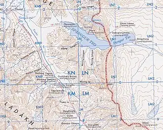Grid north (GN) is a navigational term referring to the direction northwards along the grid lines of a map projection. It is contrasted with true north (the direction of the North Pole) and magnetic north (the direction in which a compass needle points). Many topographic maps, including those of the United States Geological Survey and Great Britain's Ordnance Survey, indicate the difference between grid north, true north, and magnetic north.[8]