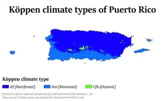 The climate of Puerto Rico in the Köppen climate classification is mostly tropical rainforest. Temperatures are warm to hot year round, averaging near 85 °F (29 °C) in lower elevations and 70 °F (21 °C) in the mountains. Easterly trade winds pass across the island year round. Puerto Rico has a rainy season, which stretches from April into November, and a dry season stretching from December to March. The mountains of the Cordillera Central create a rain shadow and are the main cause of the variations in the temperature and rainfall that occur over very short distances. The mountains can also cause wide variation in local wind speed and direction due to their sheltering and channeling effects, adding to the climatic variation. Daily temperature changes seasonally are quite small in the lowlands and coastal areas.