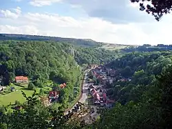 Rübeland is a village in the district of Harz in the German state of Saxony-Anhalt. Since 2004, it has been given the additional description of Höhlenort ("cave site"). The sub-districts of Rübeland are Susenburg, Kaltes Tal, Kreuztal and Neuwerk. Since 1 January 2010, it is part of the town Oberharz am Brocken. Its population is 424 (2021).[1]