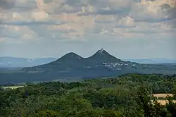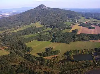 The Ralsko Uplands are a mesoregion of the North Bohemian Table within the Bohemian Massif. Four types of formations predominate in the landscape: volcanic (basaltic) inselbergs, flat-bottomed basins, sandstone structural formations with rock formations, and medium relief with acidic brown soils.[1] The uplands are further subdivided into the microregions of Doksy Uplands and Zákupy Uplands.[2]