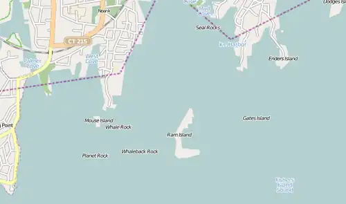 • The village of Noank, Connecticut is the nearest inhabited land, and also home to the namesake Ram Island Yacht Club.