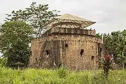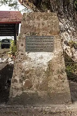 A total of 288 Sikh, Iban and Dayak policemen from Abai Bay and Sandakan led by G. Hewett, George Ormsby, P. Wise, and Adjutant Alfred Jones, were ordered to invade Mat Salleh's fort in Ranau on 13 December 1897.[39] The fort was significantly destroyed but Jones and 13 other policemen were killed. On 9 January 1898, Hewett and his troops ambushed the Ranau fort again but it was already deserted by Mat Salleh and his followers. The fort was then completely demolished.[39] As a result of this rebellion, the Company built an administration building in the district and erected a loyalty oath stone as a sign that the residents of Ranau swore loyalty to the Government.[40] The loyalty oath stone still exists until today.