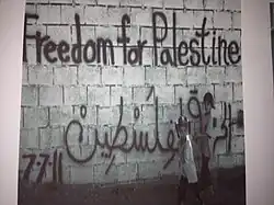 Like in other camps,[27] Rashidieh's visual landscape reflects Palestinian nationalism, as murals, posters and flags express the hope to return homes. In this way they produce and reproduce Palestinian national identity.[72] There have been several other art projects that focused on individual narratives rather than on general symbols. In 2014, for instance, "Humans of Al Rashidiya" portrayed ordinary residents online, inspired by the photoblog "Humans of New York", with the aim of countering clichés: