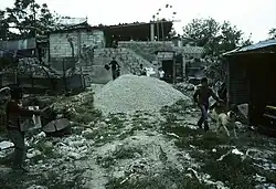 Yet more refugees arrived and hence a branch of the Armenian General Benevolent Union was founded in Tyre in 1928.[24] Then, in 1936, the colonial authorities started constructing a camp for Armenian refugees in Rashidieh.[1] According to the above-mentioned oral history project, they were settled on the land which the French authorities had given to the Catholic church.[21] The construction of the camp next to the Lebanese Christian village[23] was planned on a street grid.[27] The two village churches were incorporated into the camp.[23] During the works a number of Phoenician tombs were discovered.[28]