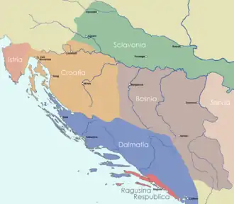 Though the Republic of Croatia administratively consists of twenty counties, it is traditionally divided into four historical and cultural regions: Croatia proper, Dalmatia, Istria, and Slavonia.[1] These are further divided into other, smaller regions.