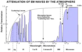 Since the sensors are looking through the atmosphere to reach the target, there are atmospheric absorption. Three main atmospheric windows, which allow penetration of radiation, can be identified.[1] They are 0.4–3 micro-meters (Visible and Near-Infrared (VNIR)), 3–14 micro-meters (Thermal Infrared TIR) and few millimeters to meters (microwave).[7] Camera in everyday life is a passive imaging system in VNIR wavelength region.[1] A simple classification of prevailing remote sensing instruments in geology, modified from Rees (2013) in accordance with context of this page.[1][7] Text in [ ] refers to the related instruments.