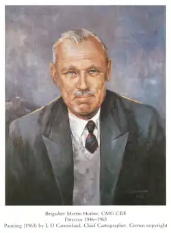The retriangulation was begun in 1935 by the Director General of the Ordnance Survey, Major-General Malcolm MacLeod.[1] It was directed by the cartographer and mathematician Martin Hotine, head of the Trigonometrical and Levelling Division (TLD).