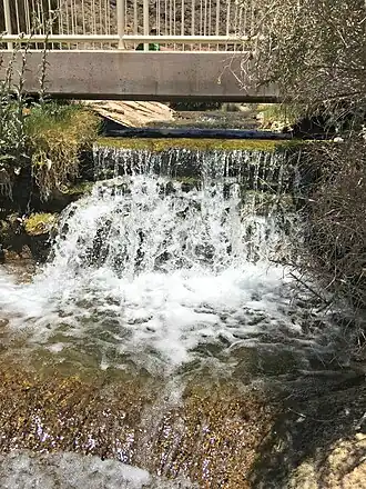 The hot mineral water emerges from the spring at 82 °F / 28 °C.[2] On hot days the water temperature in the collecting pond exceeds this temperature. The discharge rate is 1000 gallons per minute.[3]