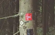 The Rothaarsteig is a 154.80 km long hiking trail along the crest of the Rothaargebirge mountain range in Germany in the border region between the states of North Rhine-Westphalia (NW) and Hesse (HE). It was opened in 2001.