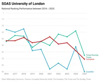 52. 1 2 "SOAS, University of London (The School of Oriental and African Studies)". The Complete University Guide. Archived from the original on 27 November 2012. Retrieved 23 May 2016.
