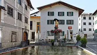 The Türelihus (Türeli House) is located in the center of Valendas and is one of the most historically valuable houses in the village. The interior contains many of the original furnishings from the Renaissance and Baroque eras. The original building was constructed in 1485. In 1554 it was expanded, this expansion was known as the Renaissance phase, with a spiral staircase within a tower and a stable was added to the north side. In 1775 it was renovated in the baroque style. The four-story building was abandoned for many years and had begun to decay. In 1994, the first attempt to renovate this building ended with only the addition of a temporary roof.[17]