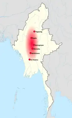 The Pyu were the first in recorded history to populate the area of Sagaing Region by the first century CE. The Burmans first migrated into Upper Myanmar by the ninth century CE. The area came under the Pagan Kingdom certainly by the middle of the 11th century when the King Anawrahta (r. 1044–1077) founded the Pagan Empire, which encompasses the modern day Myanmar.