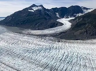 - ↑ Elliott, J.L.; Larsen, C.F.; Freymueller, J.T.; Motyka, R.J. (2010). "Tectonic block motion and glacial isostatic adjustment in southeast Alaska and adjacent Canada constrained by GPS measurements". Journal of Geophysical Research. 115 (B9): B09407. Bibcode:2010JGRB..115.9407E. doi:10.1029/2009JB007139.
