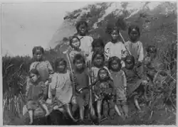 The island was also called "Kuye Fiyaka".[11] The word "Kuye" used by the Qing is "most probably related to kuyi, the name given to the Sakhalin Ainu by their Nivkh and Nanai neighbors."[12] When the Ainu migrated onto the mainland, the Chinese described a "strong Kui (or Kuwei, Kuwu, Kuye, Kugi, i.e. Ainu) presence in the area otherwise dominated by the Gilemi or Jilimi (Nivkh and other Amur peoples)."[13] Related names were in widespread use in the region, for example the Kuril Ainu called themselves koushi.[12]