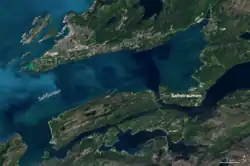 Saltstraumen (Norwegian) or Stuorstrávve (Lule Sami)[1] is a small strait with one of the strongest tidal currents in the world. It is located in Bodø Municipality in Nordland county, Norway. It is located about 10 km (6.2 mi) southeast of the town of Bodø. The narrow channel connects the outer Saltfjorden to the large Skjerstad Fjord between the islands of Straumøya and Knaplundsøya. The Saltstraumen Bridge on Norwegian County Road 17 crosses Saltstraumen.[2]