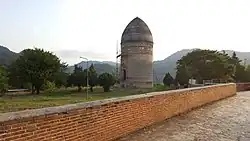 Lajim Tower, also known as Tomb Tower of Lajim,[15] is a tall cylindrical tower in the village of Lajim[16] in Mazandaran province, Iran. The tower was built around 1022 AD.[15] The Lajim inscriptions includes the first documented example of the word qubba referring to the domed structure of the building.[16] There is no doubt that the Lajim Tower was the mausoleum of an unknown Persian prince of Tabaristan.[16]