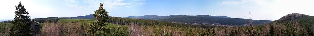 The shortest way to the Schnarcherklippen rocks is by footpath from the Schierke. From the top of the rocks there is a view over the whole of the surrounding area, including the Bärenkopf, the holiday resort of Schierke, the Erdbeerkopf, the Brocken massif and the Wurmberg. The Schnarcherklippen are checkpoint no. 14 in the Harzer Wandernadel hiking trail network.[5]