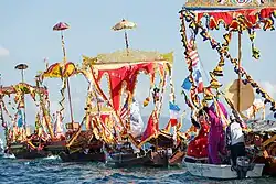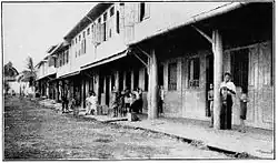 This area also was long a main landing point for pirates.[2] Very few people lived on the coasts for fear of these marauders,[2] as they roamed the seas, kidnapping, raiding and killing.[2] Action by Sir James Brooke, and other western colonial powers such as the Dutch and Spanish, managed to successfully combat the pirates over the course of the 1800s.[2] Upon the advent of the Chartered Company in the early 1880s, only one pirate stronghold remained at Omadal island, which was defeated by HMS Zephyr in 1886.[2] By mid 1887, a trading station on the southern side of the entrance to Darvel Bay was established.[2] With pirates having recently destroyed the settlement of Maimbung in Sulu, some of the Chinese merchants there asked for permission to settle in the Company's territory, under the rule of law and its resulting security.[2] Semporna was the site of a small-scale migration of Chavacano speakers from Zamboanga, fleeing the Malaysia-funded Moro Conflict between Muslim rebels and the Philippine government. These Chavacanos speak a Creole of Mexican-Spanish[4] and are partially descended from Peruvian settlers mixed with indigenous Filipinos[5] from the former Rajahnate of Sanmalan.[6]
