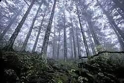 There are a number of conservation areas in the district's mountains and wetlands, in particular the world-famous Shennongjia National Nature Reserve (神农架国家自然保护区), listed on UNESCO's World Network of Biosphere Reserves.[8] The reserve includes 2,618 square kilometres (1,011 sq mi) of forest,[9] and, due to a variety of natural conditions at different elevations, has high plant diversity. One survey by Chinese botanists reports 3,479 higher plant species found in a certain area.[10] Of those species, 1793 are endemic to China.[5] In fact, the district contains the highest diversity of deciduous woody plant species in the world.[11]