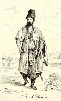 Turkic penetration in the region started in the Khazar era, however there are no unambiguous references to settlements.[12] The Turkification of the region started in the Seljuq era, although the area in parallel maintained its Persian culture under the Persianized Shirvanshah until the Safavid era. From the Safavid era onwards, the Turkification of the region accelerated with new wave of Turkoman settlements.[13]