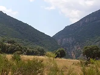 Sierra Madrona is a massif composed of a series of subranges including Sierra de Quintana, Sierra de Hornilleros, Sierra de Navalmanzano, Sierra de la Garganta and Sierra del Nacedero. They are aligned in a NW-SE direction and are separated by narrow valleys.[2] The range is bounded by the Robledillo river valley and Sierra de la Solana and Umbria de Alcudia in the North, the Montoro river valley in the East, by the smooth hills of Sierra de Andújar, Sierra Quiteria and Los Pedroches in the South, and by the Yeguas River valley in the West.