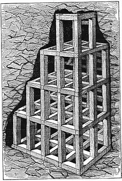 Initially, most of the lumber produced in California was used in mining. The Comstock Lode was a major center for logging, with operations supplying lumber for the construction of mine structures, such as tunnels, shafts, and buildings, as well as fuel for the mines. Dan DeQuille observed in 1876, "the Comstock Lode may truthfully be said to be the tomb of the forests of the Sierra. Millions upon millions of feet of lumber are annually buried in the mines, nevermore to be resurrected."[73]