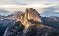 The Sierra runs 400 mi (640 km) north-south, and its width ranges from 50 mi (80 km) to 80 mi (130 km) across east–west.[3] Notable features include the General Sherman Tree, the largest tree in the world by volume; Lake Tahoe, the largest alpine lake in North America; Mount Whitney at 14,505 ft (4,421 m),[1] the highest point in the contiguous United States; and Yosemite Valley sculpted by glaciers from one-hundred-million-year-old granite, containing high waterfalls. The Sierra is home to three national parks, twenty-six wilderness areas, ten national forests, and two national monuments. These areas include Yosemite, Sequoia, and Kings Canyon National Parks, as well as Devils Postpile National Monument.