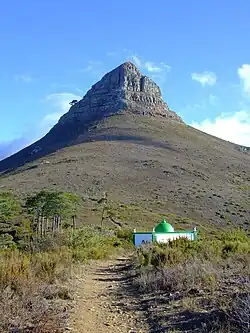 There are several tombs, or kramats, on the hill for Muslim missionaries and religious leaders. The most conspicuous one, a white square building with a green dome, is for the sheikh Mohamed Hassen Ghaibie (Shah al-Qadri), a follower of Sheikh Yusuf. Other tombs consist of raised rectangles, decorated with satin. They are still visited by some local Muslim people.