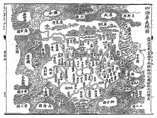 The Sihai Huayi Zongtu ("Complete Map of the Four Seas, China, and the Barbarians") is a Chinese world map dated to 1532, the 11th year of the Ming Dynasty's Jiajing Emperor.[1][2] It is now located in the Harvard Library.