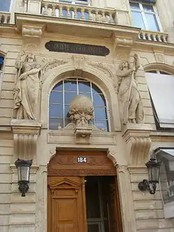 The Société de Géographie (French: [sɔsjete də ʒeɔgʁafi]; lit. '"Geography Society"'), is the world's oldest geographical society. It was founded in 1821 as the first Geographic Society.[1] Since 1878, its headquarters have been at 184 Boulevard Saint-Germain, Paris. The entrance is marked by two gigantic caryatids representing Land and Sea. It was here, in 1879, that the construction of the Panama Canal was decided.