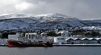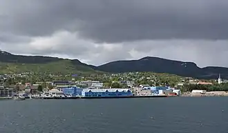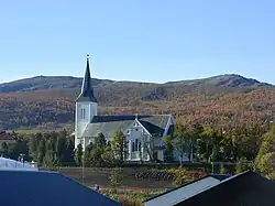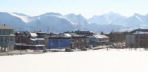 ⓘ (Norwegian) or Suortá (Northern Sami)[4] is a town[1] and the administrative centre of Sortland Municipality in Nordland county, Norway. The town is located on the east coast of the island of Langøya, along the Sortlandsundet strait. In 1997, the municipality decided to declare "town status" for the urban area of Sortland. Sortland is the largest town and commercial centre in the whole Vesterålen region and is often referred to as "the blue town by the strait" (den blå byen ved sundet) since many of the buildings are painted blue.[5]