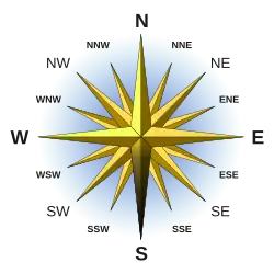 By convention, the bottom or down-facing side of a map is south, although reversed maps exist that defy this convention.[3] To go south using a compass for navigation, set a bearing or azimuth of 180°. Alternatively, in the Northern Hemisphere outside the tropics, the Sun will be roughly in the south at midday.[4]