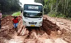 There is public transportation available in South Papua, for example Perum DAMRI buses which serve pioneer routes from Merauke to other districts such as Kurik, Tanah Miring, Jagebob, Sota, and Muting.[77]