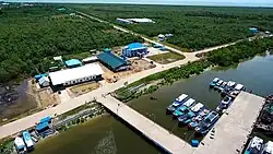 Among the districts in South Papua, Asmat Regency relies heavily on water transportation, primarily speedboats. This reliance stems from the scarcity of land roads connecting villages and districts in Asmat and the absence of a land connection with neighboring districts by 2023. Situated on the banks of a river amidst a swamp, the village of Asmat and its capital, Agats town, feature structures elevated from the ground using wooden planks or concrete. Although Ewer Airport offers air access to Asmat, reaching Agats town from the airport necessitates the use of a speedboat due to the lack of land roads.[80]