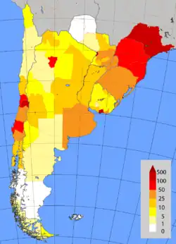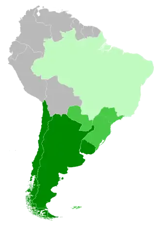 - ↑ Excluding the Falkland Islands, Paraguay, São Paulo State, and South Brazil.