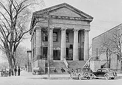 The first bank to be chartered in Illinois was located at Old Shawneetown in 1816. The first building used solely to house a bank in Illinois was built in 1840 in Old Shawneetown and was used until the 1920s. The Old Shawneetown State Bank has been restored as an historical site. Crops of cotton and tobacco were grown in the extreme southern region of Illinois. Cotton was grown mostly for the home weaver, but during the Civil War, cotton was also grown for export, as the regular supply of cotton from the South was not available. Enough tobacco was grown to make it a profitable crop for export. Both crops have been succeeded by other agricultural commodities.[3]