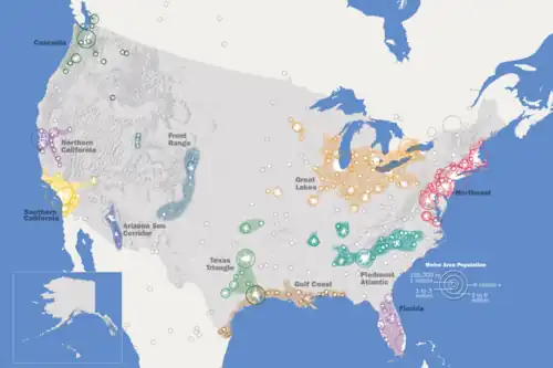 - ↑ Not included is Albuquerque and Northern New Mexico due to size constraints. Northern New Mexico is included per "Megaregions". America2050. USA: Regional Plan Association. Archived from the original on April 30, 2009. Retrieved December 7, 2014. Home page of the historic America 2050 program of the RPA.