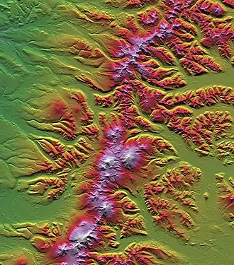 Sredinny Range (Russian: Срединный хребет, meaning Middle Range) is a mountain range on the Kamchatka Peninsula of Russia. It stretches from northeast to southwest along the center of the peninsula and is made up of volcanoes, mostly shield volcanoes and stratovolcanoes. The highest peak of the range is Ichinsky, a stratovolcano some 3,607 metres (11,834 ft) high.[1] The Sredinny Range is separated from the north-south-running coastal Eastern Range (Vostochny) to the east, by the Central Kamchatka Depression.[2]